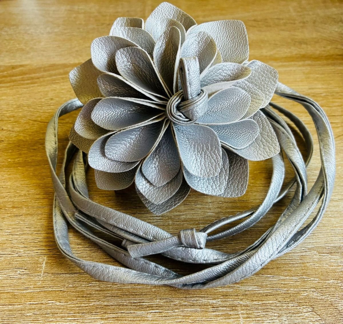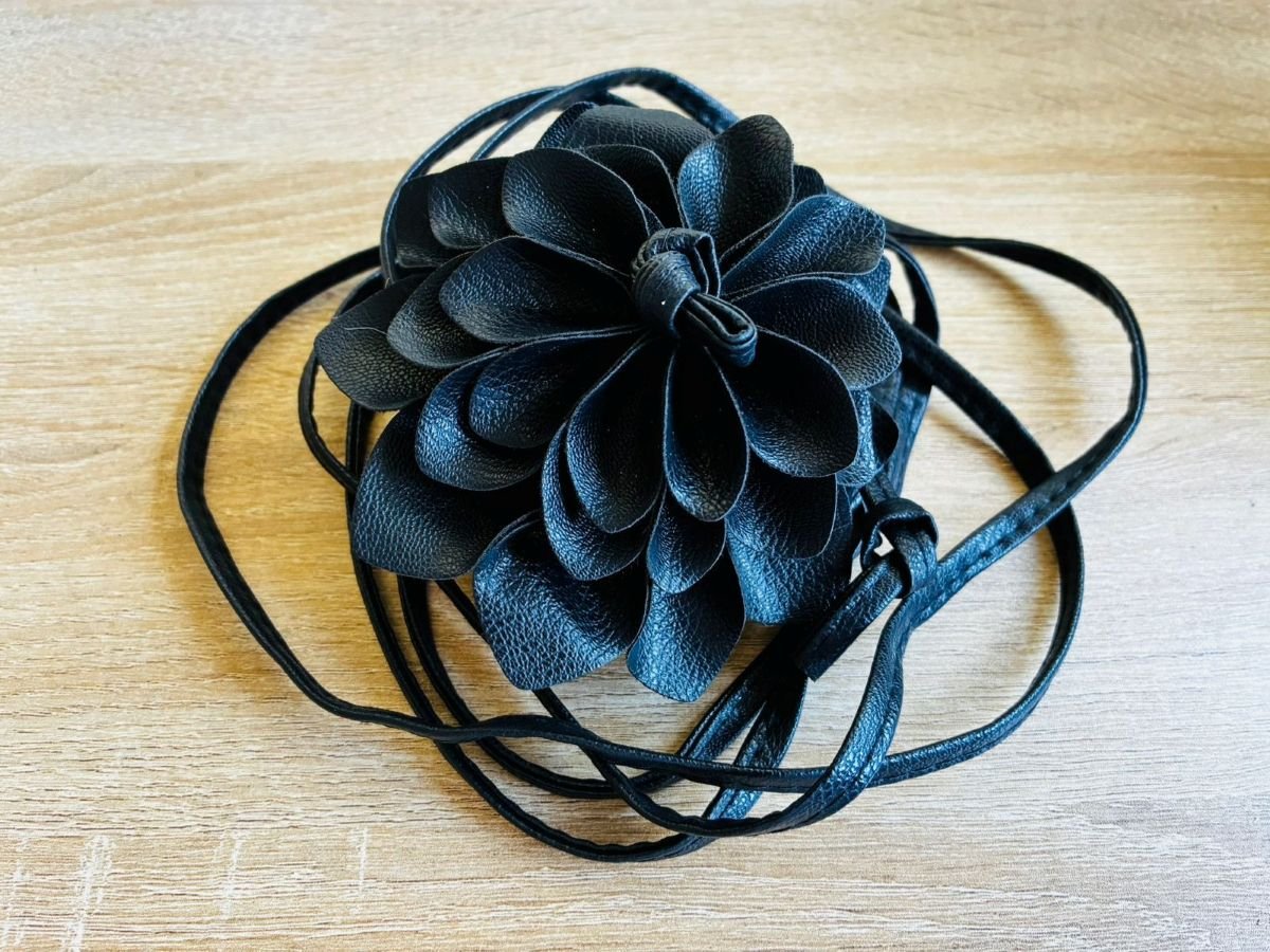 Un accesorio necesario y perfecto, semejando a una hermosa flor Dalia, pero transformado en cinturón.